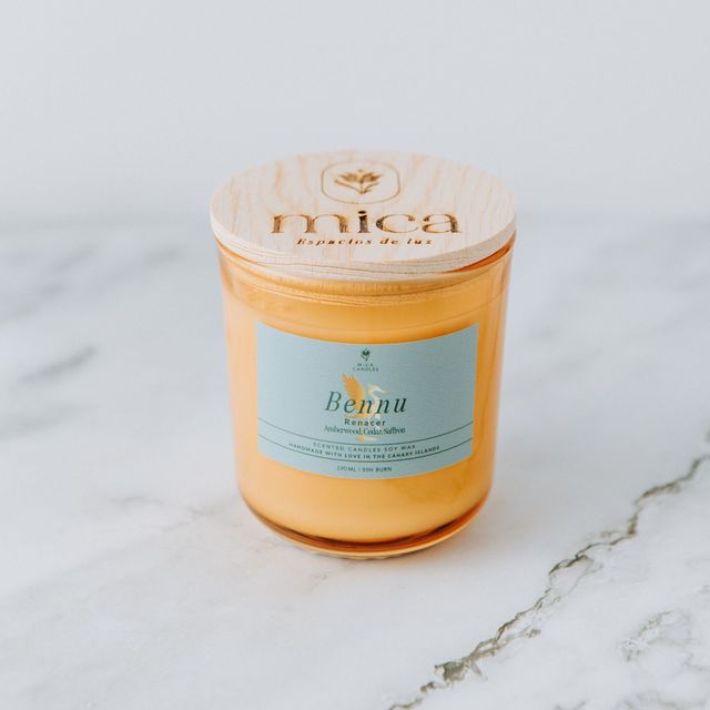 Descubre la vela aromática Bennu, una edición limitada inspirada en el mito del renacer. Con notas altas de azafrán y jazmín, corazón de madera de ámbar y un fondo cálido de resina de cedro y almizcle.